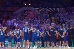 比赛结束后,冰岛的球迷们并未离开现场,而是与冰岛男篮的球员们一同留在场边,一起高唱国歌。