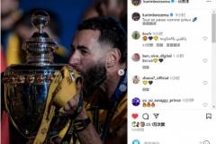 本泽马晒亲吻沙特联奖杯照片:夺冠时刻一切按计划进行